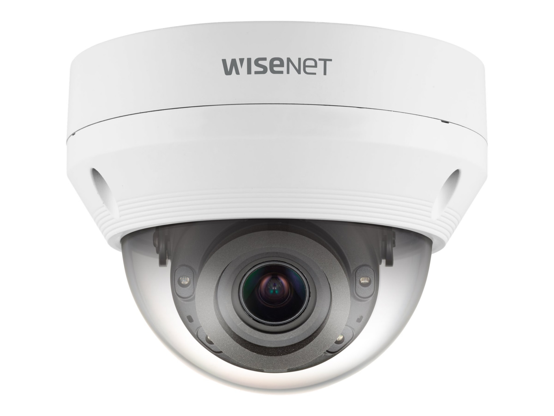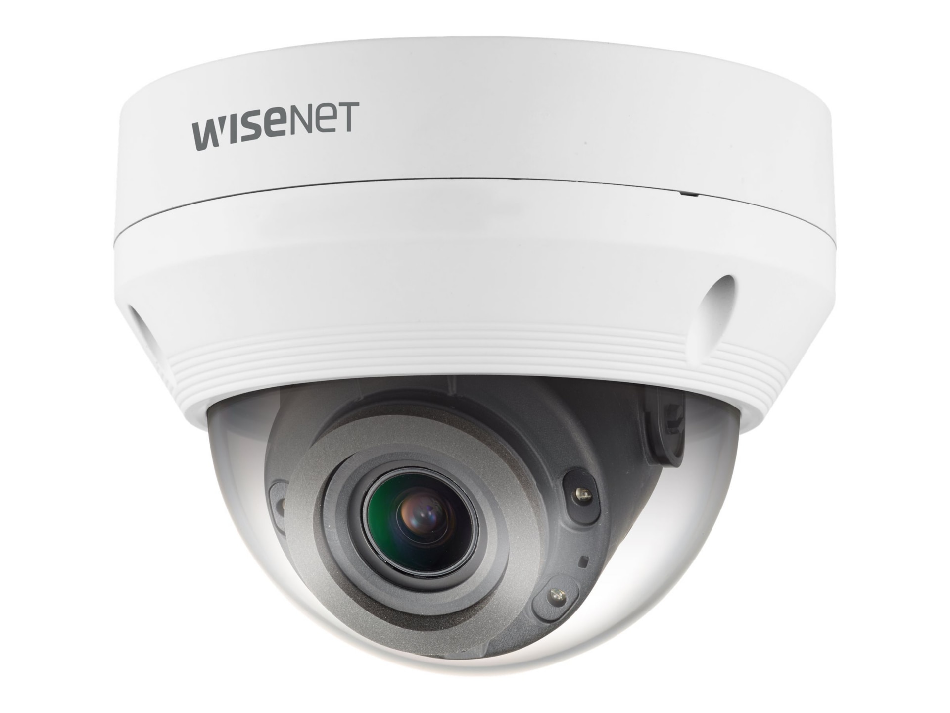 The Hanwha Techwin Wisenet QNV-6082R1 Network Surveillance Camera perfectly blends into any environment, making it ideal for retail. It features a 1/2.8-inch 2 MP CMOS sensor that captures videos at a maximum resolution of 1920 x 1080 pixels. It supports MJPEG, H.264 and H.265 compression technology to reduce data size and extend the recording duration, which helps minimize the load on the network. This network camera features tampering, motion detection and defocus detection.