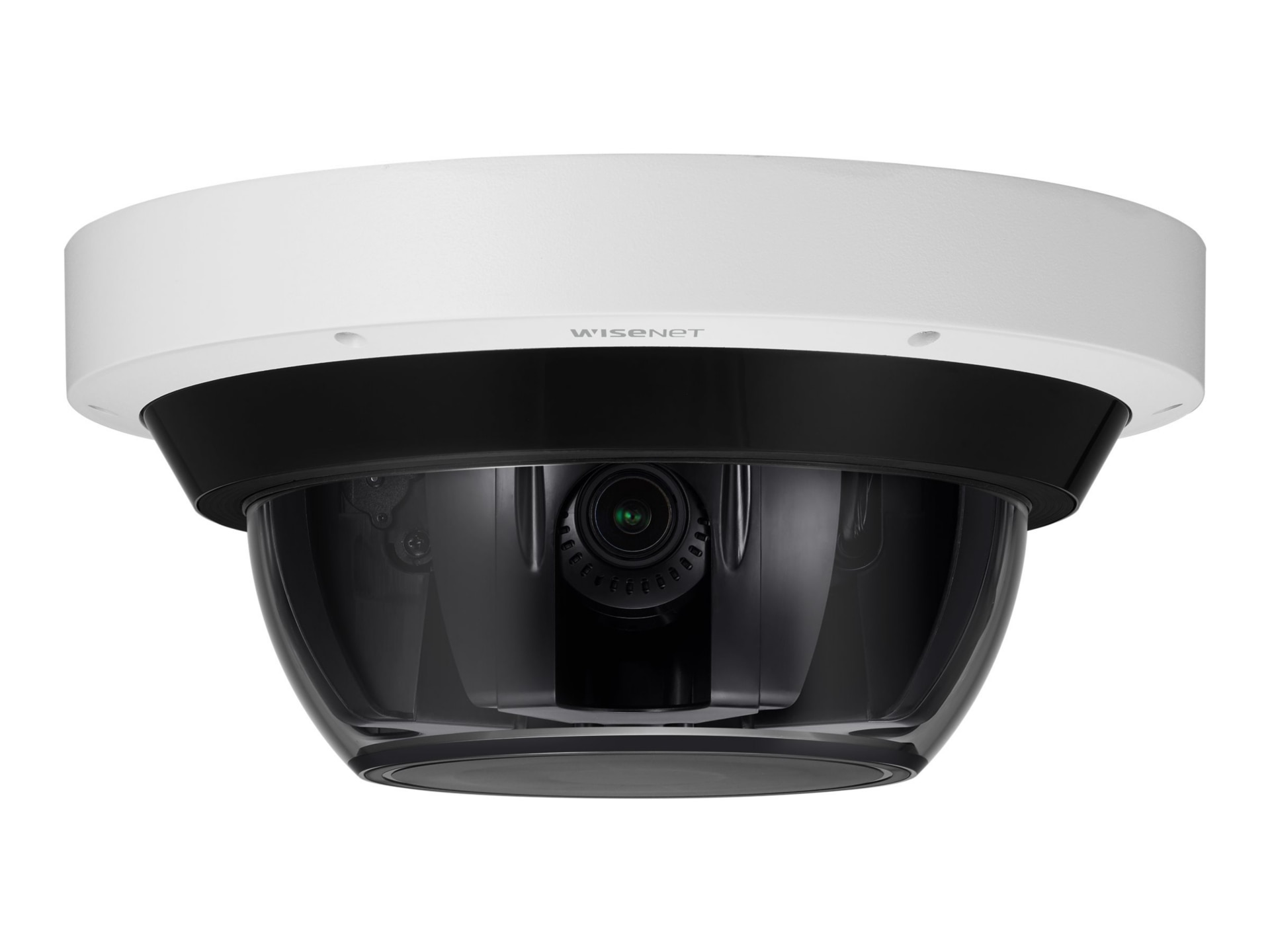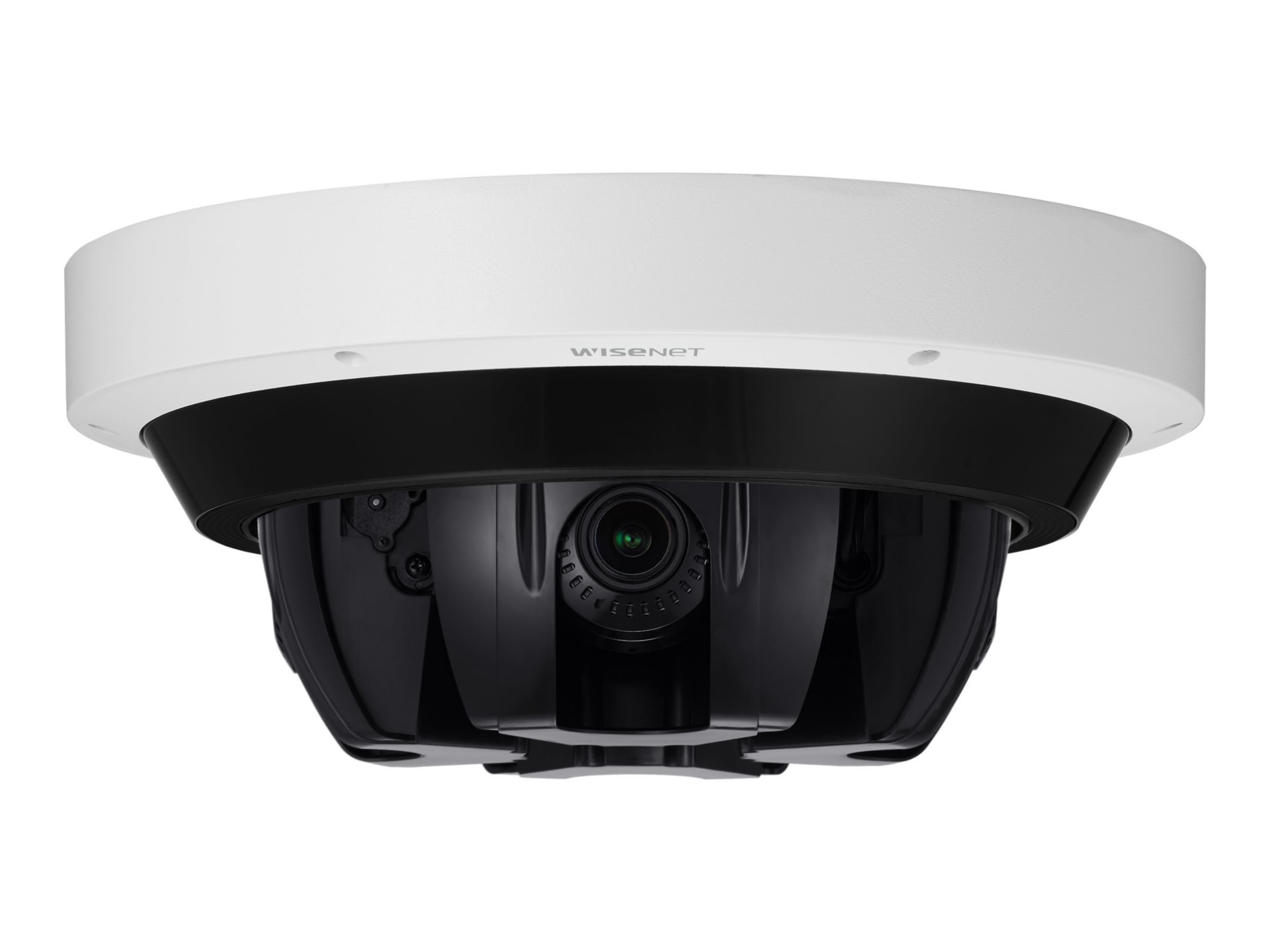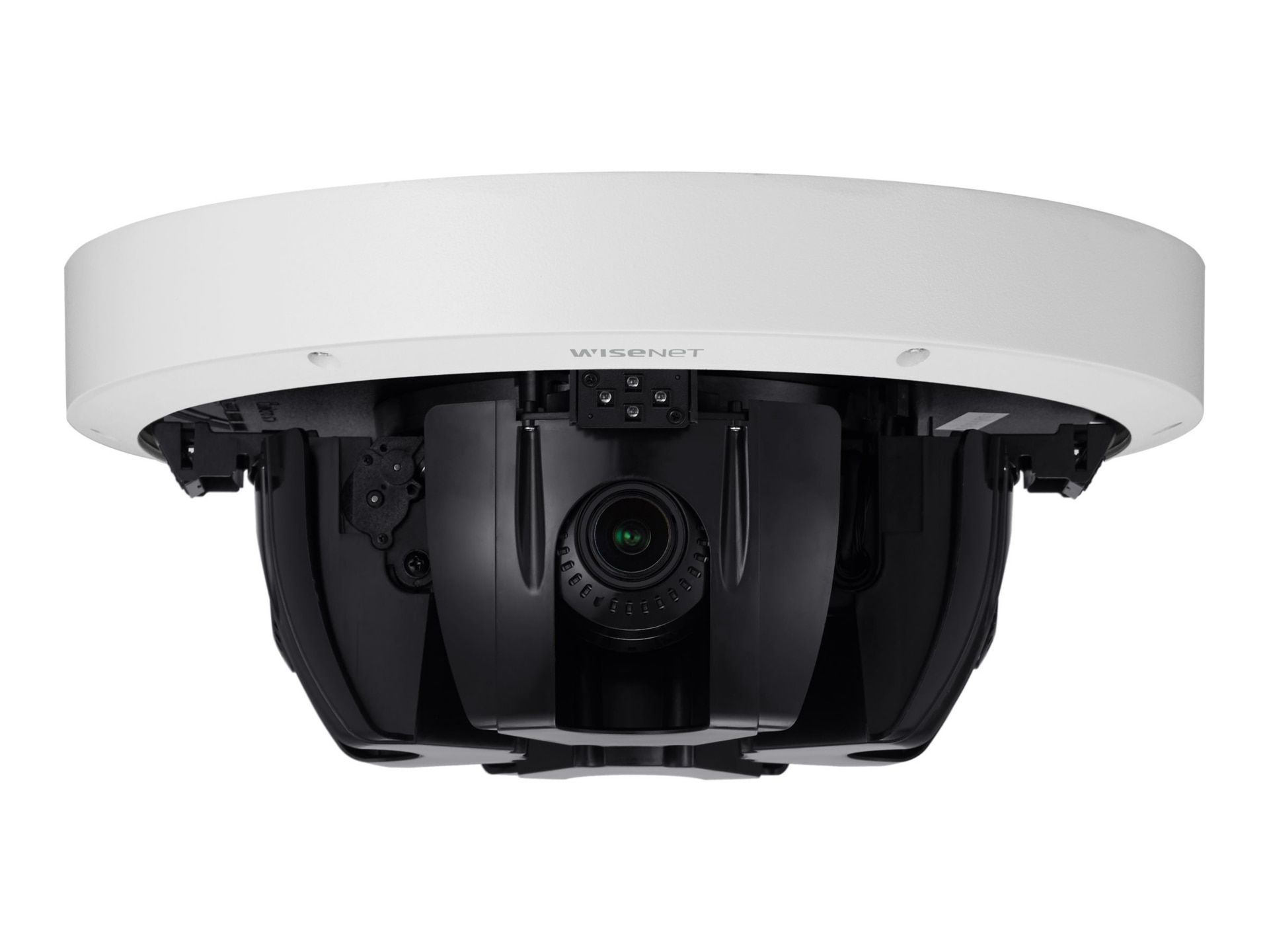 The Hanwha Techwin Wisenet PNM-9084RQZ1 Network Camera provides four 2 MP sensors for a total resolution of 8 MP. It supports remote PTRZ (Pan, tilt, rotate and zoom) setup, saving installers time and effort of making adjustments on a ladder to change the setting. The PNM-9084RQZ1 has built-in IR sensors for each of the four lenses. Each lens and its IR sensors move together when users control the lenses, producing clear images from up to 30 meters, even in low-light environments.