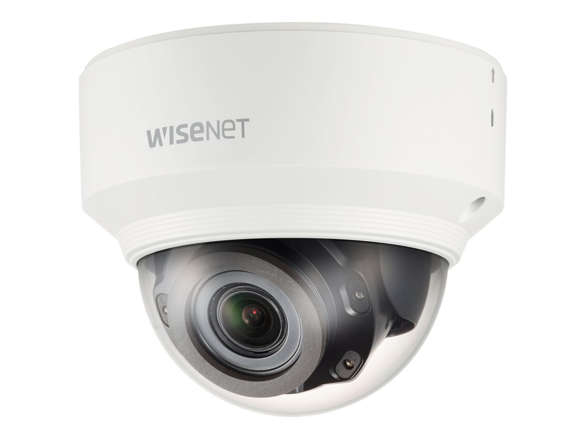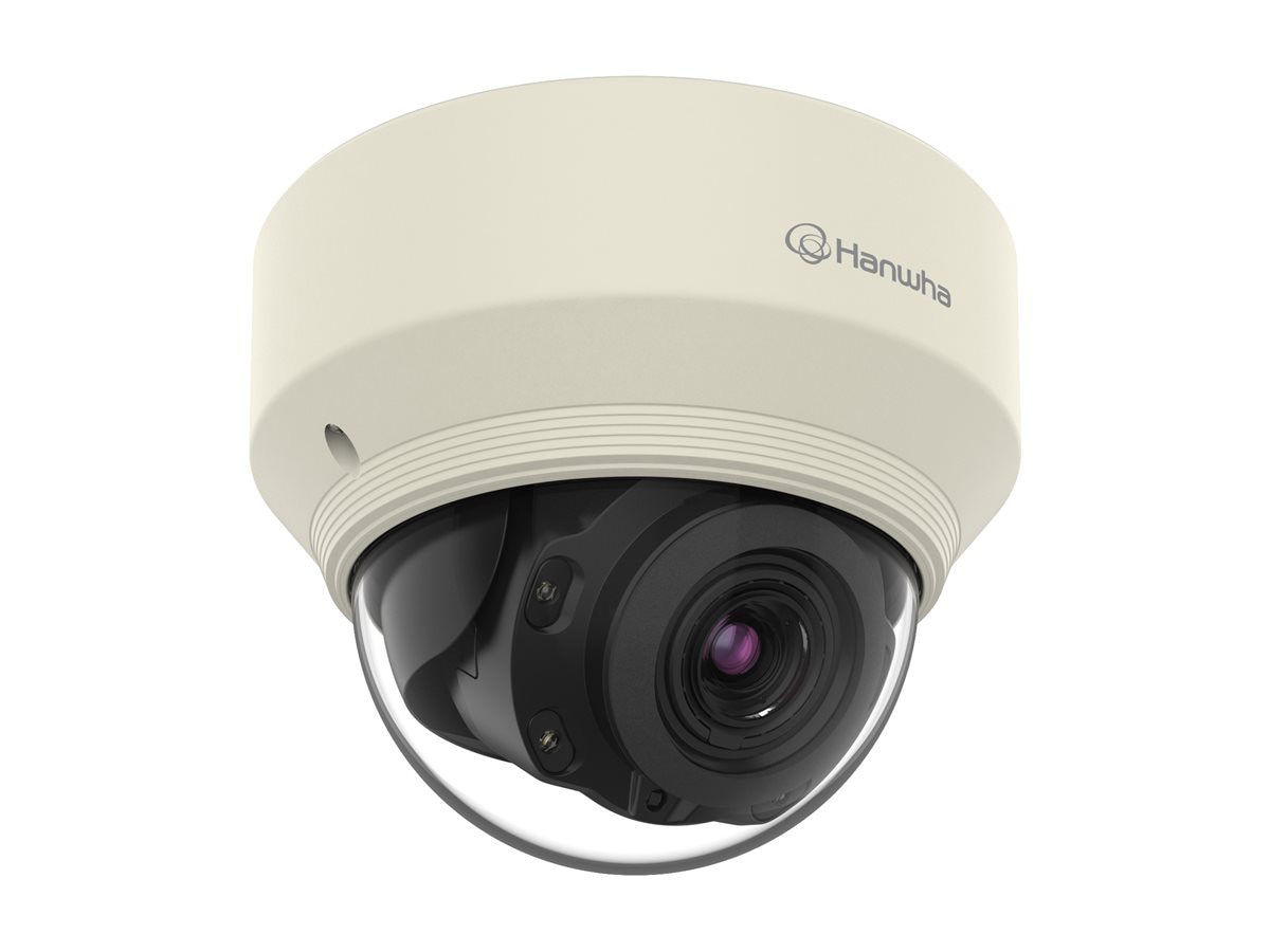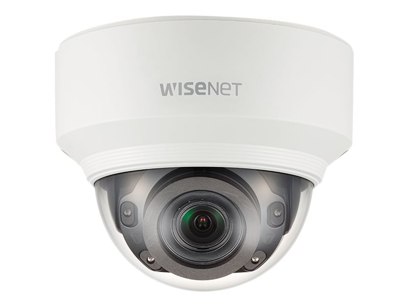 The WiseNet X Series 5MP Network Dome Camera features a 1/1.8-inch progressive scan CMOS sensor and a 3.9 mm to 9.4 mm varifocal lens for capturing images at a maximum resolution of 2560 x 1920 pixels. It comes with two built-in memory card slots that accept cards up to 512 GB. With its IR-cut filter and IR LEDs, this surveillance camera can capture images even in low-light conditions.
