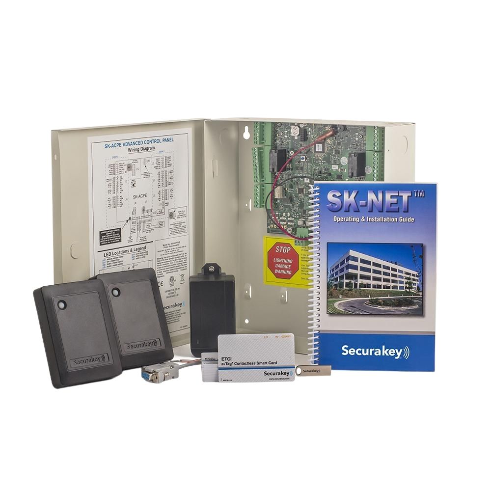 Easy to learn and easy to install, without compromising quality or sacrificing critical features these convenient e*ACCESS kits contain everything you need for a complete two-door, expandable system for a very low price. SecuraKey’s feature-filled SK-NET™ software, along with the SK-ACP advanced control panel make this a state-of-the-art package.